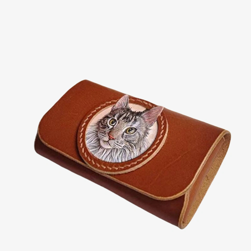 Your furriest guardian in bifold form. Hand-stitched leather etched with your pet's likeness protects cards and cash while developing vintage character.